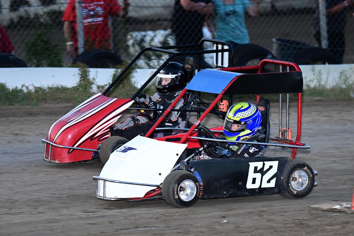 CAGE KART CLASSES: Brookelyn's Hair & Replacement Rookie, Brenning Painting Amateur, Fast Glass Jr. 1, C&L Automotive Jr. 2, Nick's Lawncare Adult Clone, Uncle Franks Blue Wazoom